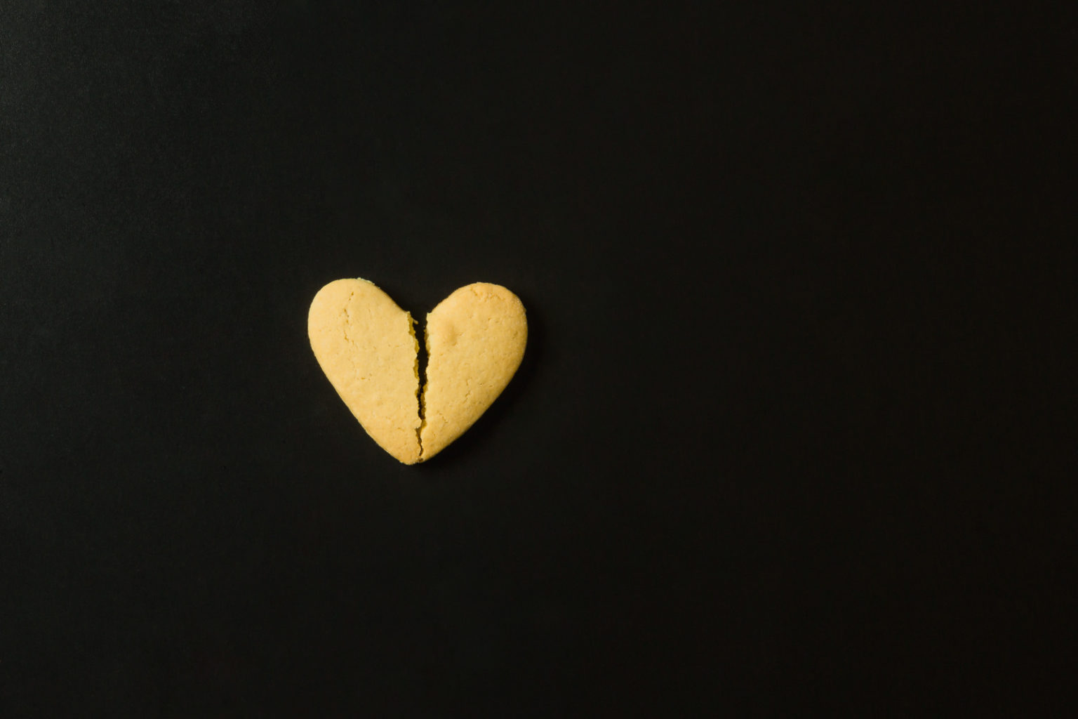 Cracked cookie in a heart shape. Broken heart concept
